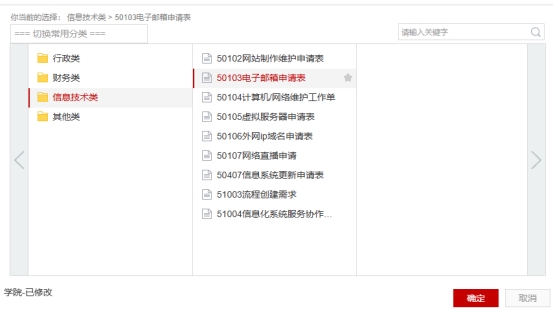 开通流程:OA系统→发起流程→信息技术类→电子邮箱申请表